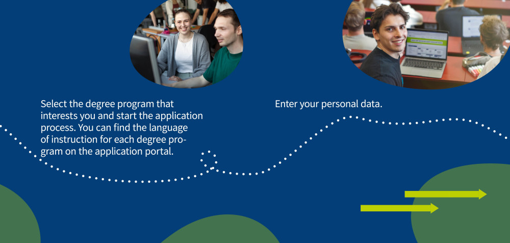 As a next step you can select your desired study program in the application portal under the menu item "course" and enter your data as well as upload your documents.