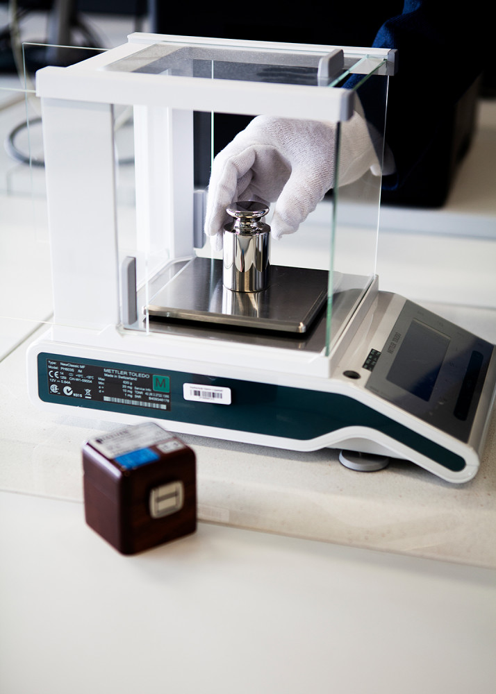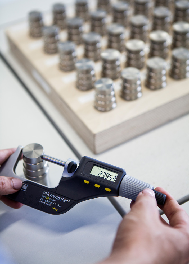 - diverse Handmessmittel, z.B. Messschieber, Bügelmessschrauben, Oberflächenmessgeräte und Präzisionswaagen sowie entsprechende Normale