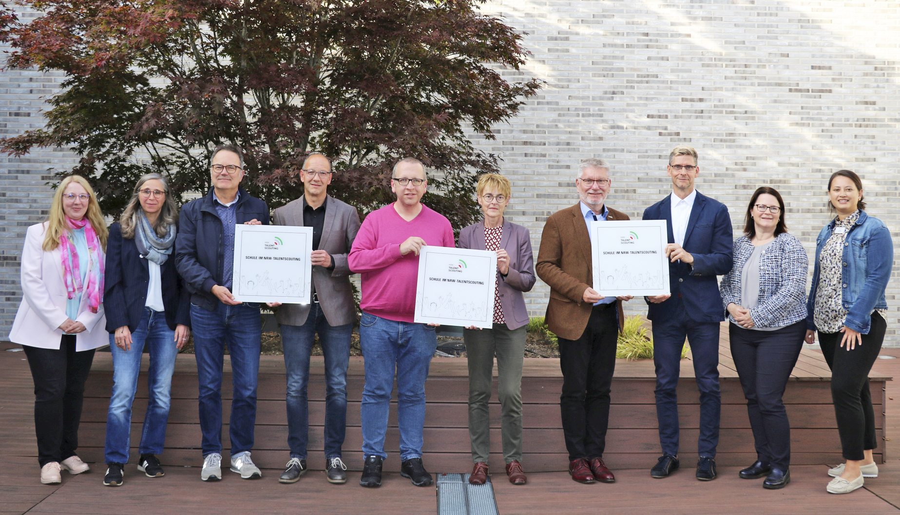Das NRW-Talentscouting ist ein landesweites Förderprogramm, das an ausgewählten Hochschulen – darunter auch die Hochschule Hamm-Lippstadt (HSHL) – verortet ist und Oberstufen-Schüler*innen individuell dabei unterstützt, ihren eigenen Bildungsweg erfolgreich zu gestalten, unabhängig von Herkunft oder finanziellen Voraussetzungen. Am Dienstag, 30. September 2025 wurden jetzt bei einem feierlichen Termin am Campus Lippstadt der HSHL an der Dr.-Arnold-Hueck-Straße die beteiligten Kooperationsschulen mit ihrer "Talentscouting-Plakette" ausgezeichnet. Gefördert wird das Programm vom Ministerium für Kultur und Wissenschaft des Landes Nordrhein-Westfalen.