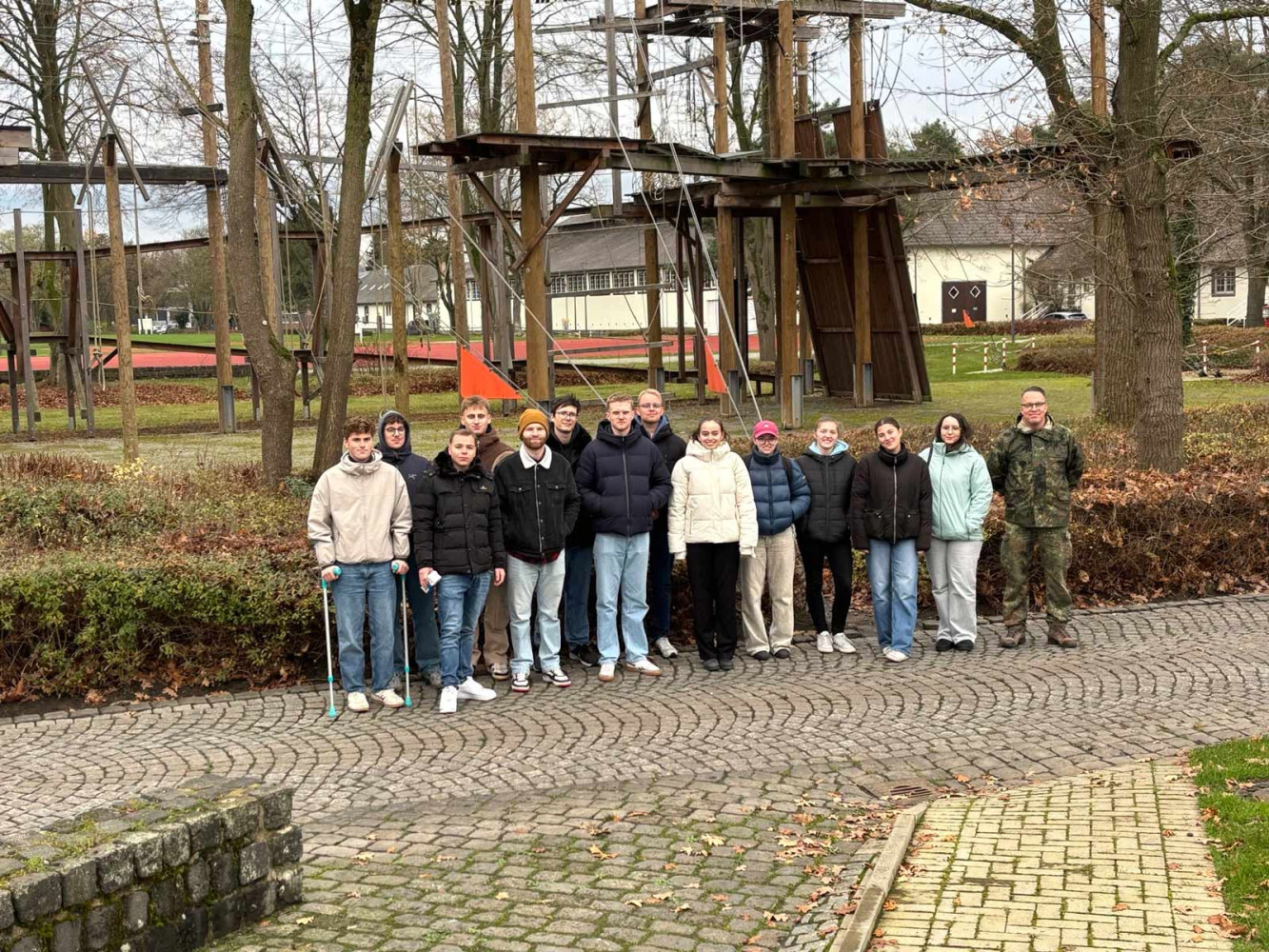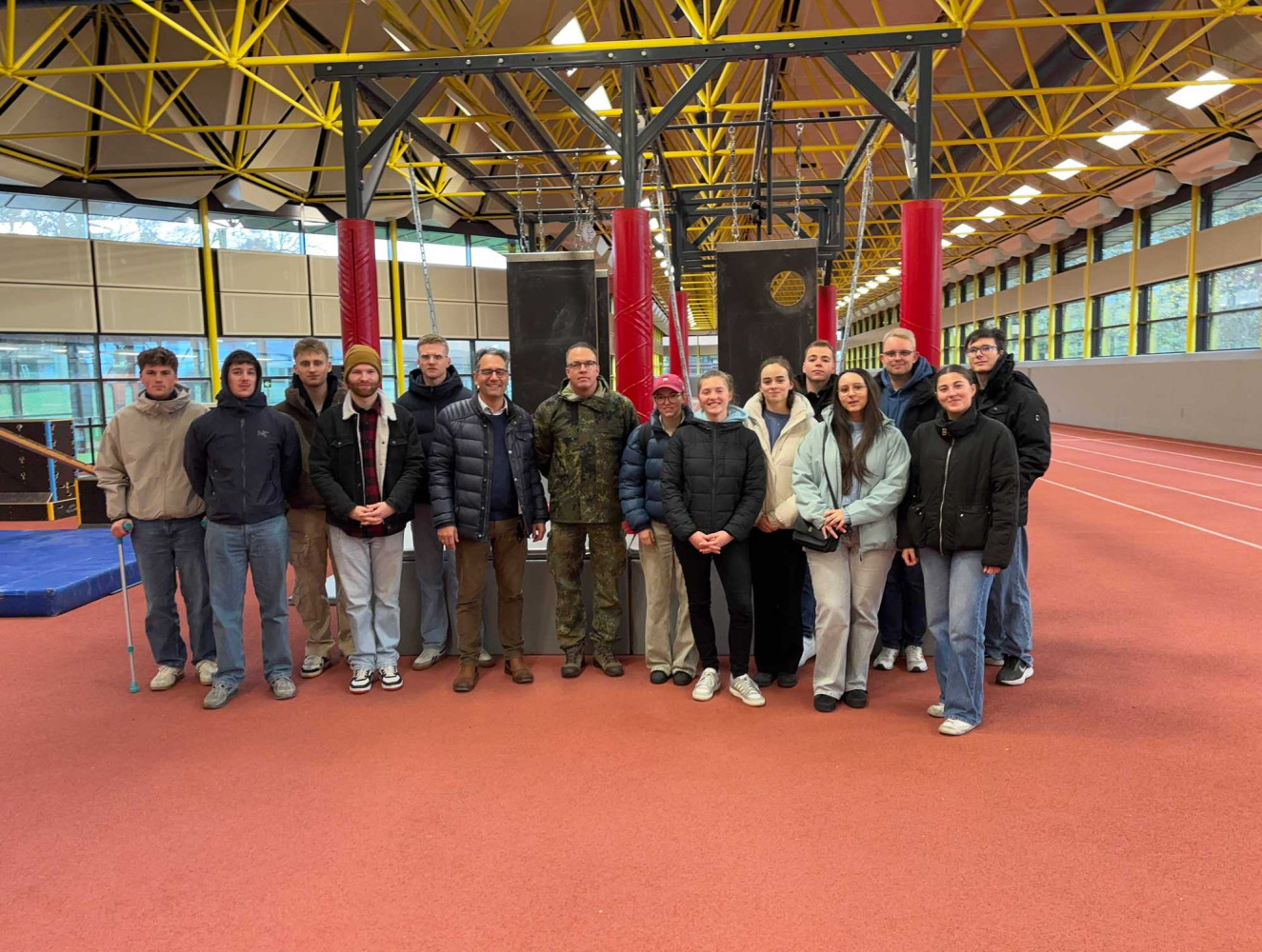 Studierende des HSHL-Bachelorstudienganges "Gesundheits- und Sportingenieurwesen" (Campus Hamm) im Fach "Maschinenelemente" haben am Mittwoch, 19. November 2025 die Sportschule der Bundeswehr in Warendorf besucht. Dort erfuhren sie Hintergründe zur großen Rolle von Sport und Rehabilitation bei der Bundeswehr, nicht nur für Spitzensportler*innen, sondern für alle Soldat*innen. Die Studierenden der Hochschule Hamm-Lippstadt (HSHL)